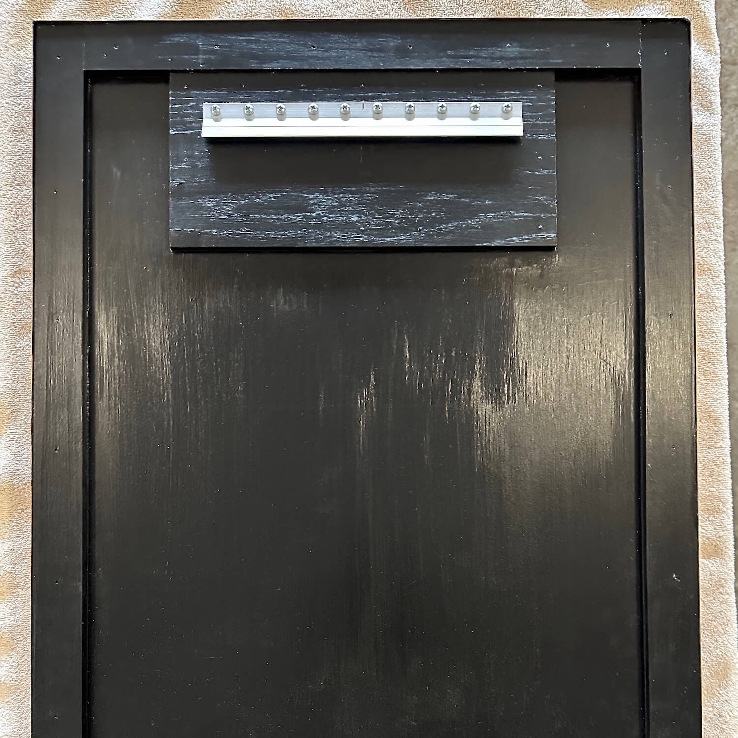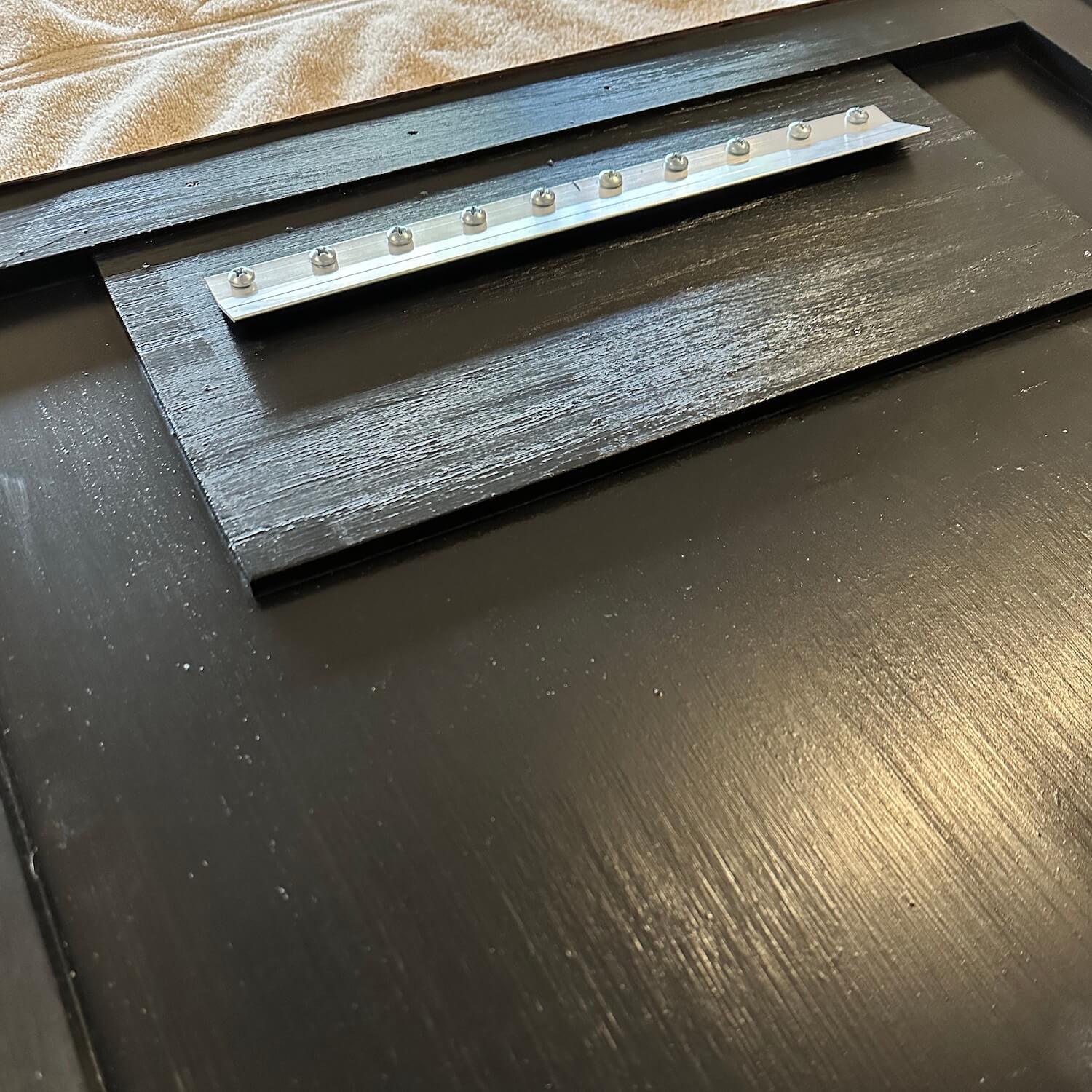 Hang the artwork once the first three screws are tight to confirm that it sits level. Small adjustments can still be made by loosening the screws and re-leveling the bracket
