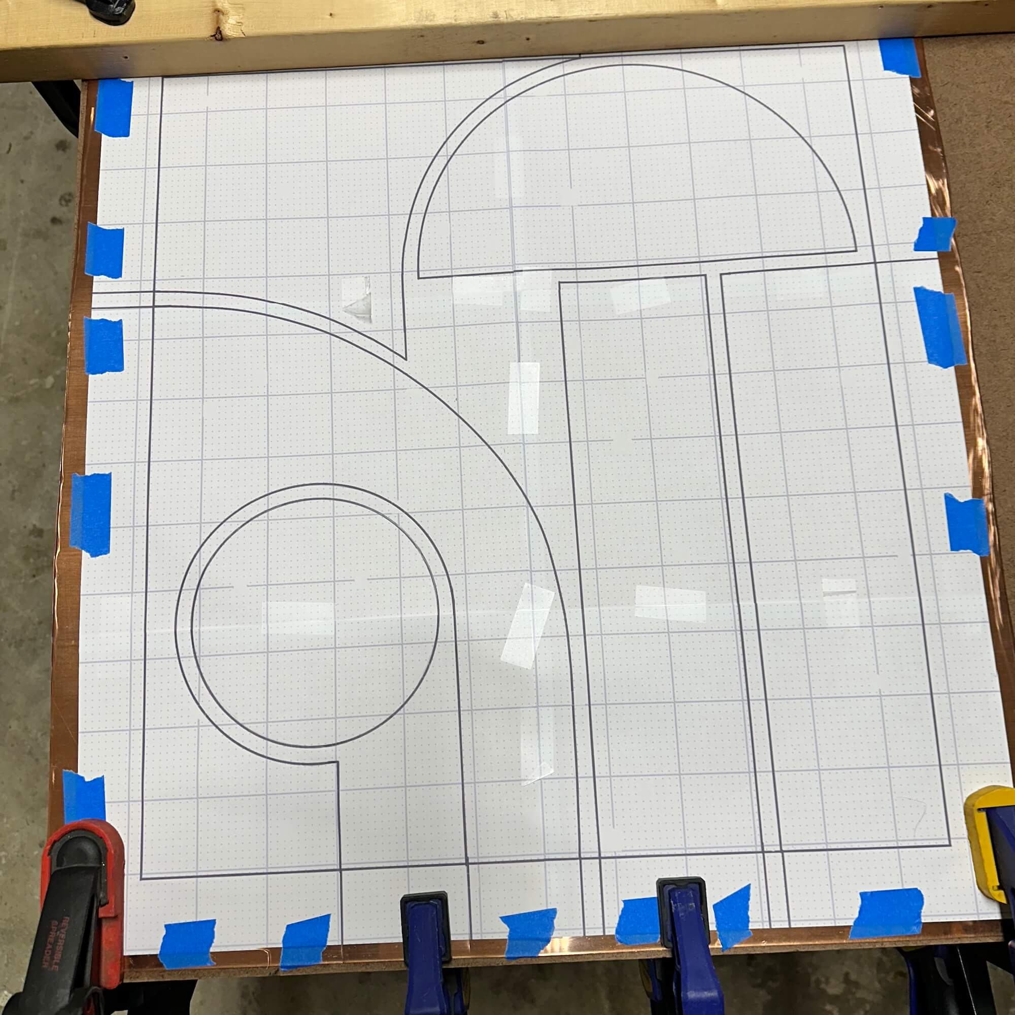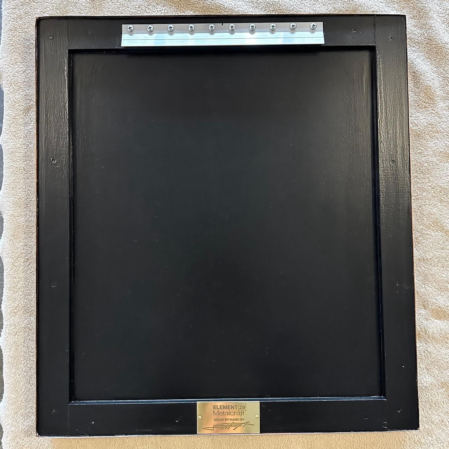 Once the surface relief was formed the sides of each panel were bent over and welded at the corners, creating a hollow metal shell roughly as thick as a penny. The copper shells were mounted to an internal frame and backing board that supports the structure and provides a place to attach the hanging hardware.