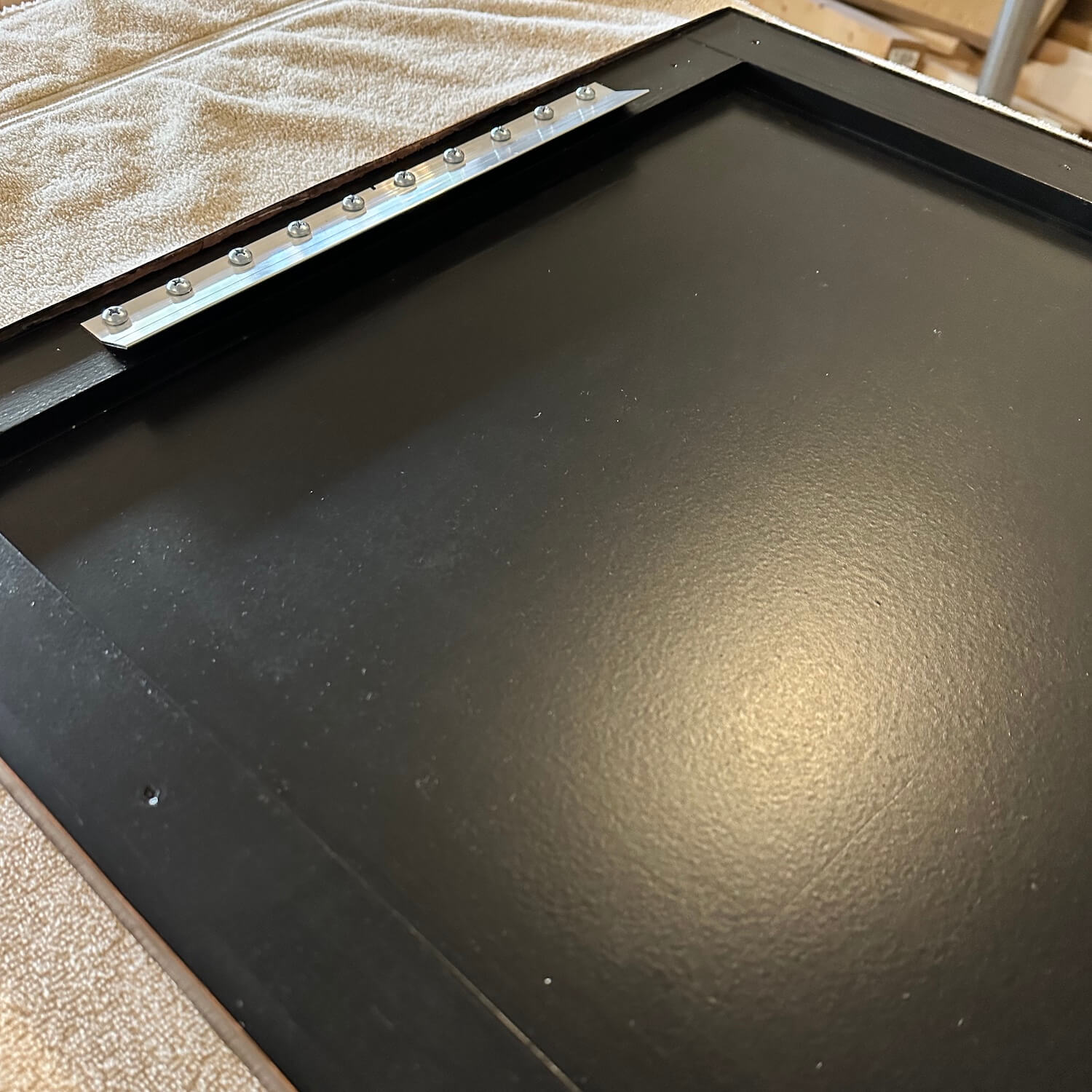 Hang the artwork once the first three screws are tight to confirm that it sits level. Small adjustments can still be made by loosening the screws and re-leveling the bracket